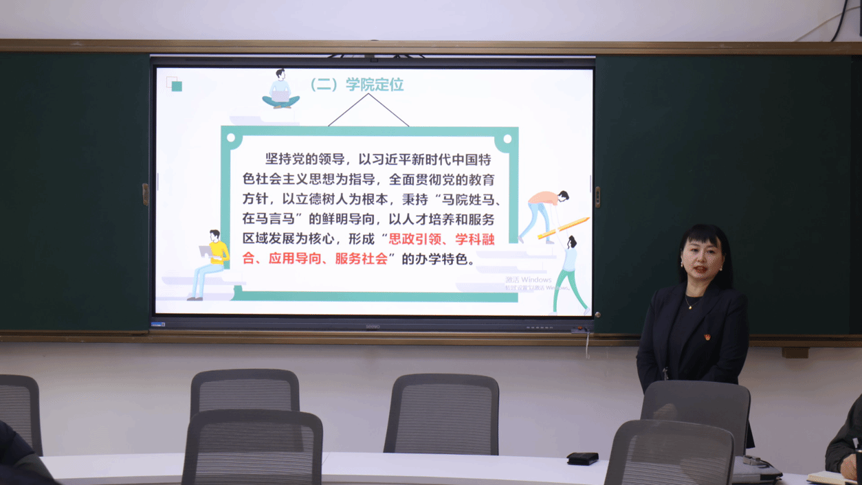 座谈会上,马克思主义学院副院长刘晓燕重点从三个维度汇报了学院近年发展成效。在思政教育方面,学院精准实施青年教师专项培育计划,健全教育教学全过程管理机制,积极探索大中小学思政课一体化建设协同路径,助力思政育人质量持续提升;在专业教育方面,学院紧扣内涵发展核心,不断完善具有马院特色的育人体系,为高质量人才培养筑牢根基;在特色建设方面,学院坚持党建引领,深化校地协同育人,构建起“资源共享、优势互补、协同共进”的育人新格局。