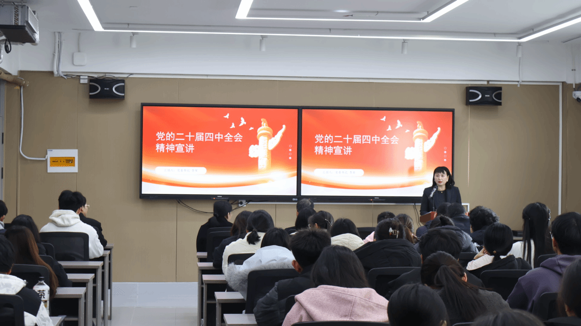 宣讲中,李军书记紧扣党的二十届四中全会主题,首先简要阐释了全会召开的时代背景、核心要义和实践要求等基本情况,随后围绕中国式现代化、共同富裕、以经济建设为中心、科技创新、文化强国五个关键维度,对全会提出的重大思想、重要论断进行了系统阐释与深入解读。他强调,高校作为人才培养、科学研究、社会服务的重要阵地,必须把学习贯彻全会精神与落实立德树人根本任务紧密结合,坚守为党育人、为国育才初心使命。马克思主义学院作为思想政治教育的主阵地,要在理论阐释、课堂教学、实践育人中走在前面,引导师生深刻领悟“两个确立”的决定性意义,增强“四个意识”、坚定“四个自信”、做到“两个维护”。