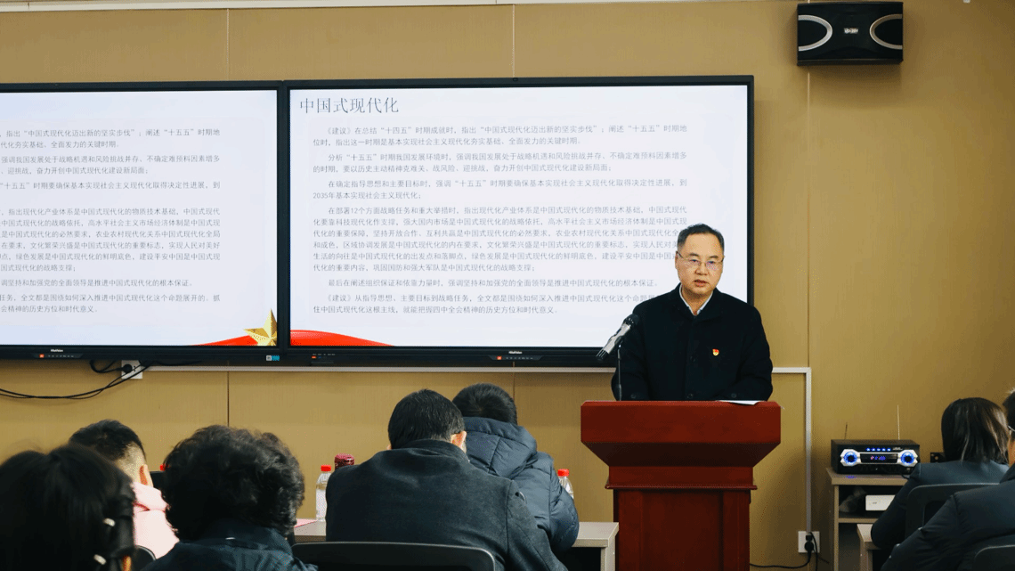 为深入学习贯彻党的二十届四中全会精神,推动理论学习与教育教学深度融合,12月19日,青岛工学院党委书记李军走进马克思主义学院,在M212知馆内开展专题宣讲。本次活动由马克思主义学院副院长刘晓燕主持,党委办公室副主任崔艳伟与窦磊、马克思主义学院领导班子成员、教研室主任、专业负责人及师生代表80余人参加,共同聆听宣讲、交流学习。