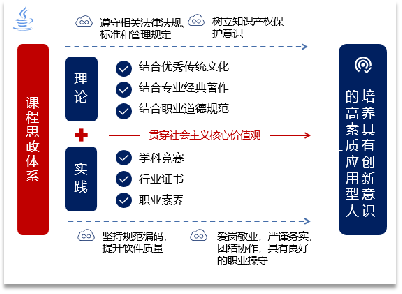 该课程以应用型人才培养为目标,立足专业特色,准确把握课程思政建设方向,结合优秀传统文化、专业经典著作、职业道德规范,融入学科竞赛、行业证书等,搭建理论+实践的课程思政体系。