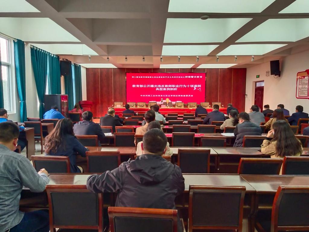 10月28日下午,根据学院《纠治教师师德失范专项活动实施方案》安排,我院在大学生活动中心第五会议室召开了师德警示教育会议。院领导毋虎城、盛兴文、刘士合出席会议,各党总支(党支部)书记、纪检委员参加,纪检监察室主任张长喜主持会议。
