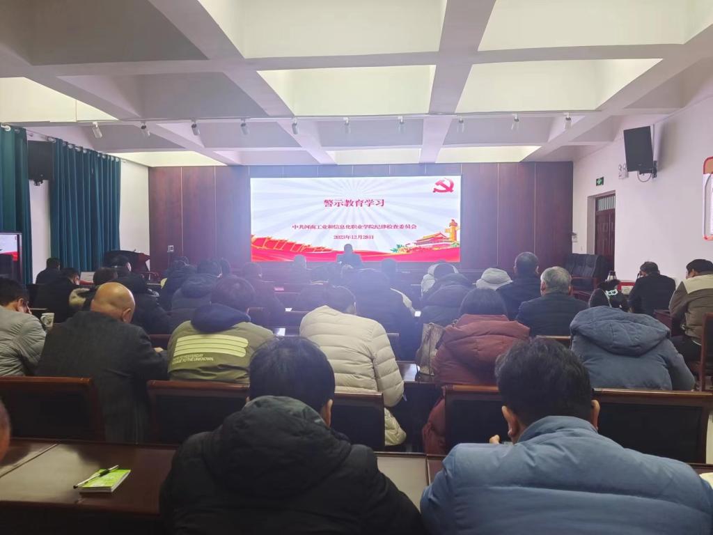 12月28日下午,为深入贯彻落实全面从严治党要求,推动党员干部不断增强廉洁自律意识,筑牢拒腐防变思想防线,学校在行政楼401会议室开展警示教育学习活动。校纪委书记盛兴文讲话,校领导及中层干部参加。