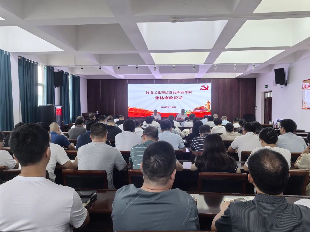 8月29日上午,校党委书记尹彦礼对全体中层及以上干部进行集体廉政谈话。会议由党委副书记、院长史先进主持。