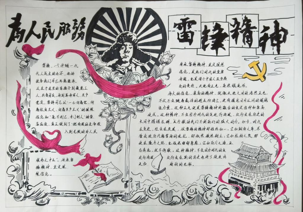 活动中,同学们深入挖掘雷锋事迹、名言等资料,精心设计手抄报。这些作品色彩鲜艳、内容丰富,有的以图片形式展现雷锋的助人为乐精神,有的则以图文并茂的方式介绍雷锋精神的时代价值。