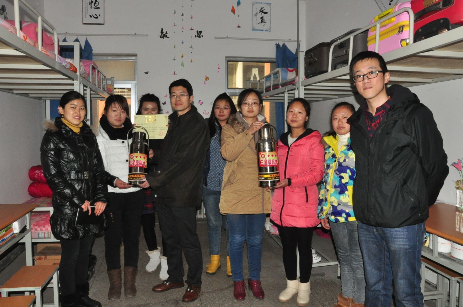 为了进一步营造温馨、和谐、安全的宿舍氛围,给学生树立健康、文明、整洁的榜样,2015年1月8日、9日两天,学生处组织各系党总支书记、辅导员、班主任亲自到荣获我院2014-2015学年第一学期“三星级宿舍”称号的20个宿舍进行挂牌认定。老师们对这些宿舍取得的荣誉给与了充分的肯定,希望他们能够继续努力,保持荣誉。