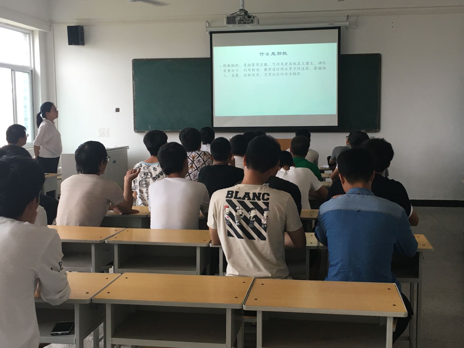 为进一步推进反对邪教的宣传教育工作,引导我院师生掌握反邪教知识,增强防范邪教的意识和能力,营造抵制邪教、崇尚科学的浓厚氛围。9月25-27日,院各系部以班级为单位开展“树立正确的宗教观念、反对邪教”的主题班会。