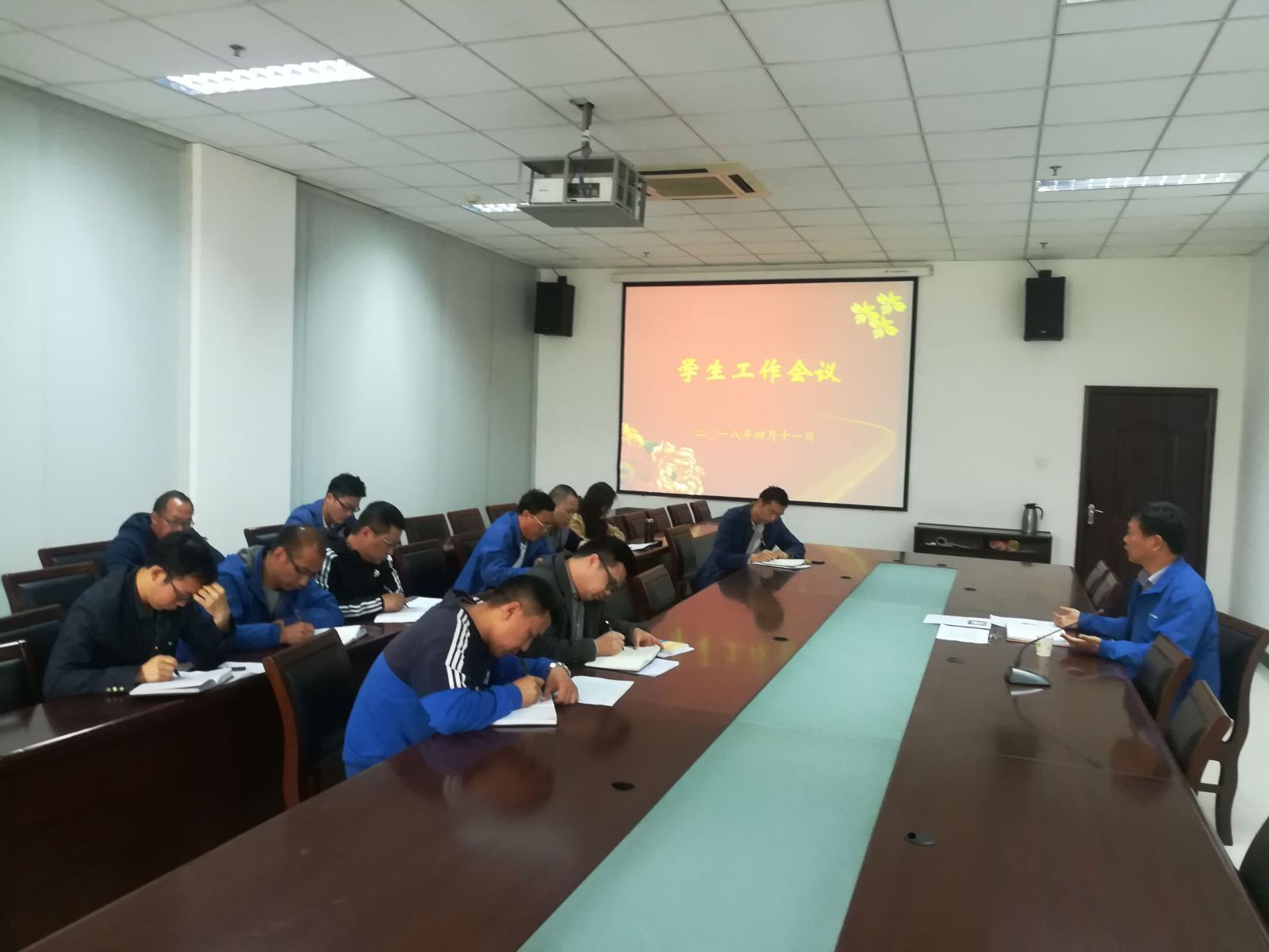 4月11日上午10点钟,在信息楼九楼第二会议室,我院召开学生工作会议,安排部署近期学生工作。我院学生处、宿管办、团委、保卫处相关负责人及各系部书记参加会议。