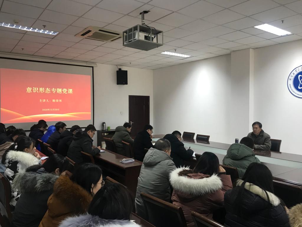 12月30日下午,院党委副书记陈荣邦在第二会议室为机关二支部、财经商贸系党总支的全体党员同志讲授了一堂生动的意识形态专题党课。