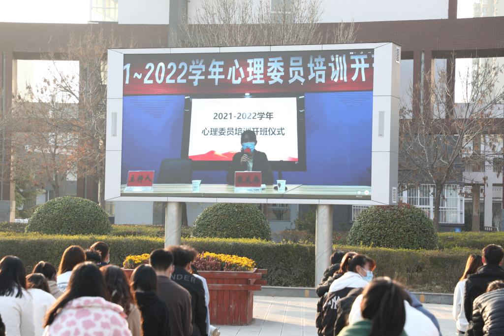 为进一步增强我校大学生心理健康教育工作的专业性和科学性,营造良好的校园心理教育氛围,2021年11月18日下午4时心理委员培训开班仪式在我校双创中心举行。因疫情防控要求,我校采取线上直播和少部分同学线下学习相结合的形式向同学们传达会议要求,出席会议的有我校党委委员、副校长张庆伟及相关工作人员,会议由我校学生工作部部长丁军猛主持,全校197名心理委员参加开班仪式。