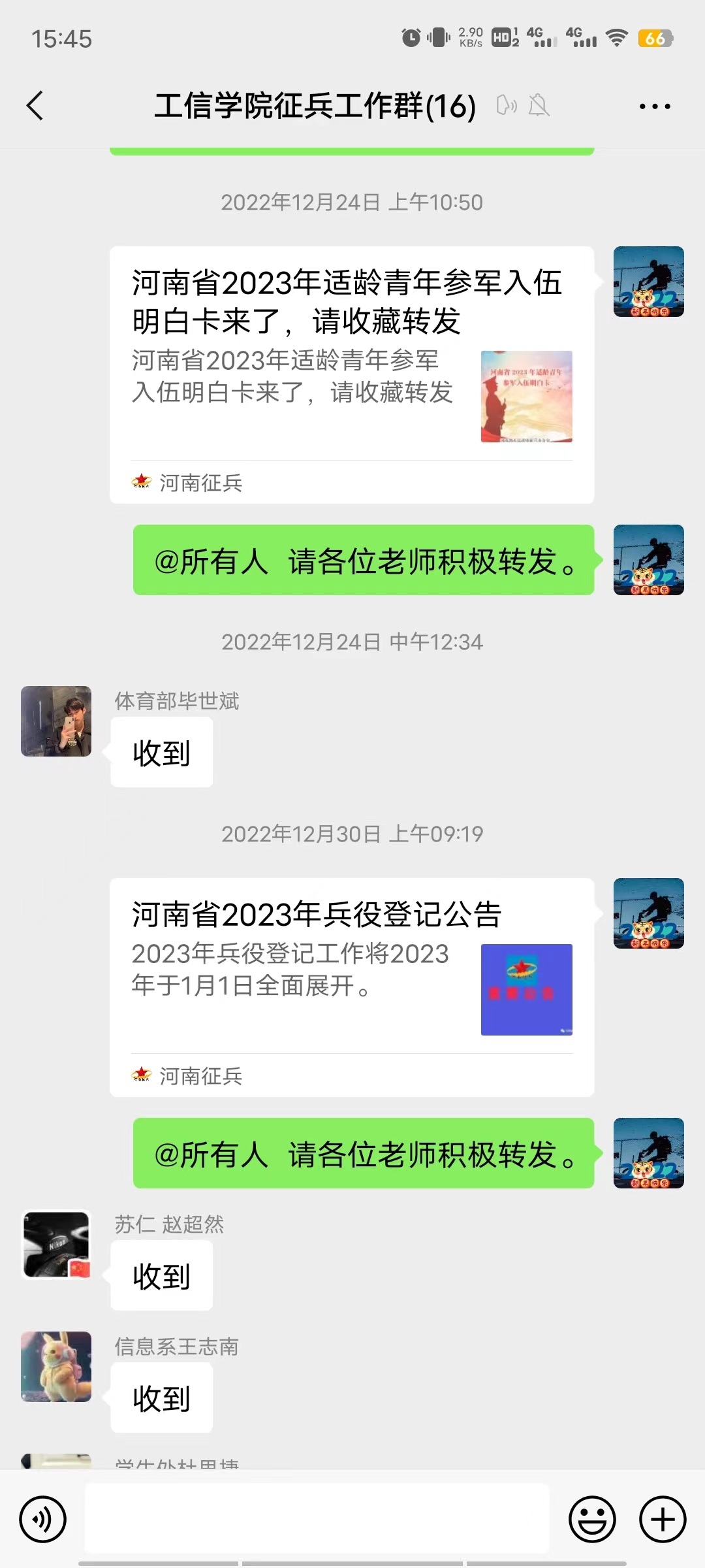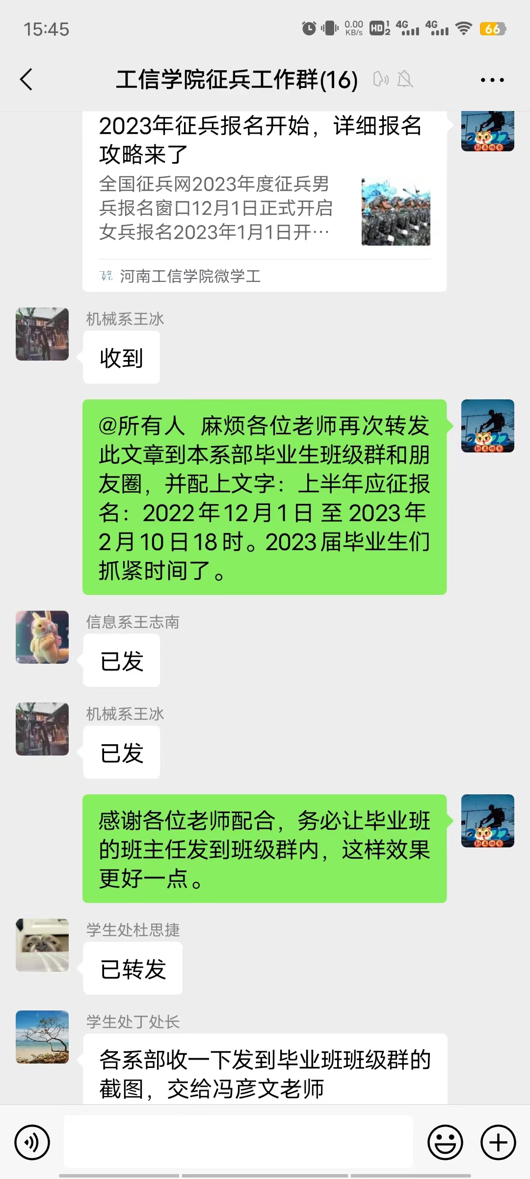 为响应国家号召,为有效动员大学生,尤其是毕业生参军入伍,使每一名学生“入伍安心、服役暖心、退伍放心”,根据学校安排和疫情防控要求,我校武装部组织各系部征兵辅导员召开2023年线上征兵宣传动员会议。