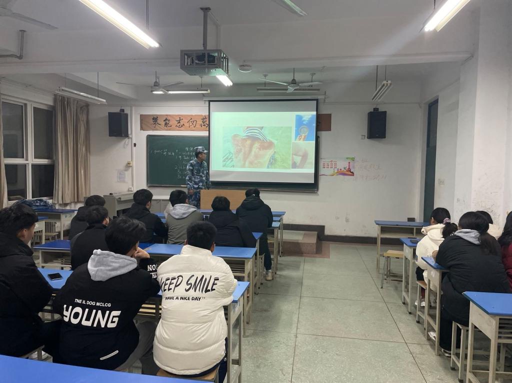 为进一步做好学院2022年征兵工作,充分发挥退伍复学学生的作用,自12月6日起,学院退伍军人服务社的退伍复学的学生利用晚自习进行为期两周的国防知识宣讲。退伍复学学生结合自身在部队服役实际,为在校大学生进行国防知识宣传,通过本次活动的开展,进一步增强了大学生热爱祖国、建设祖国、保卫祖国的意识,激发广大学生的爱国情感,增强了广大学生的国防意识。同时,以国防教育、爱国主义教育为引领,让广大学生深刻理解"国无防不立,民无兵不安"的重大意义,牢固树立"居安思危"的意识,激发了大学生征兵入伍的热情,为学院征兵工作打下良好基础。