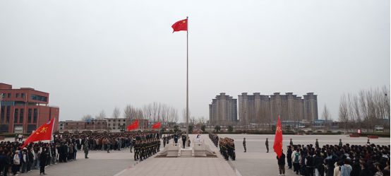 旭日初升,两千余名师生昂首挺立于国旗台前。“请全体肃立,迎国旗!”一声令下,国旗护卫队迈着整齐的步伐将国旗运至国旗台下。“向国旗敬礼!”,五星红旗伴随着雄壮的国歌冉冉升起,激情昂扬的歌声响彻校园,全体师生目光坚定,共同见证这国防教育中领人难忘的一刻。