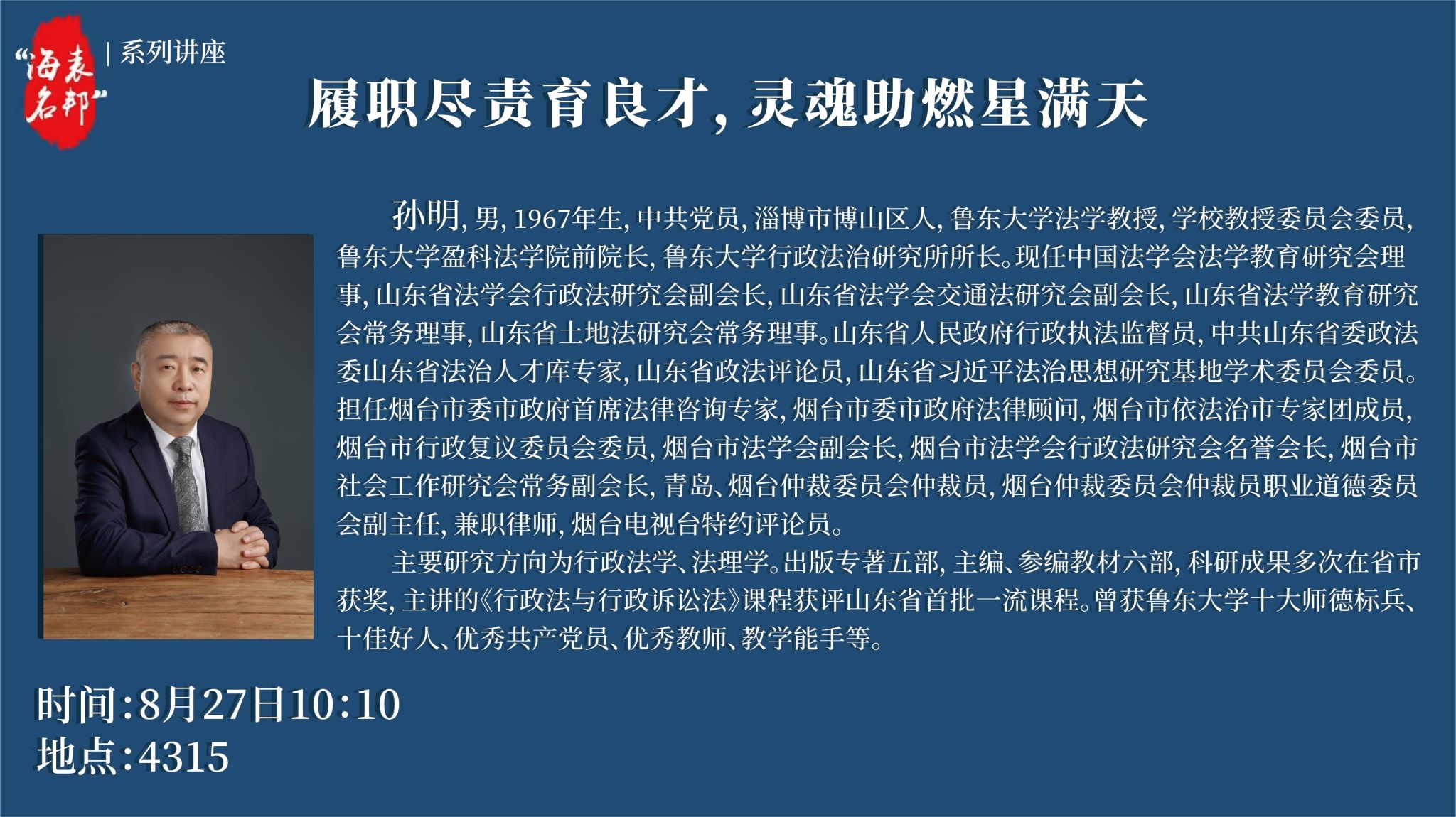 “海表名邦”系列讲座:孙明《履职尽责育良才,灵魂助燃...