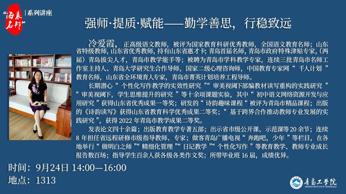 “海表名邦”系列讲座:冷爱霞《强师·提质·赋能——勤学...