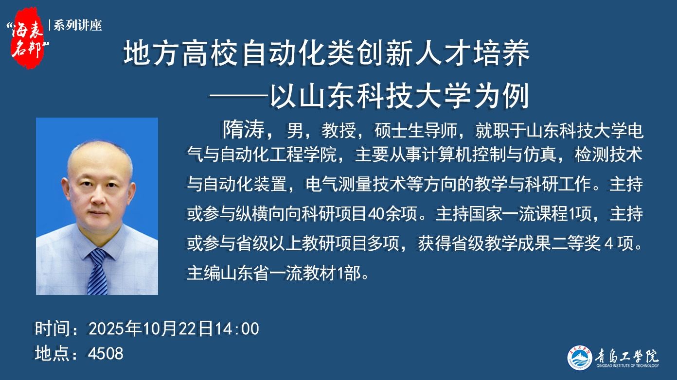 “海表名邦”系列讲座:隋涛《地方高校自动化类创新人才...