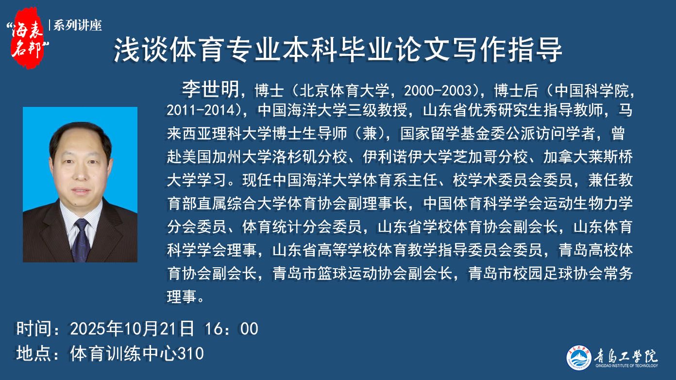 “海表名邦”系列讲座:李世明《浅谈体育专业本科毕业论...