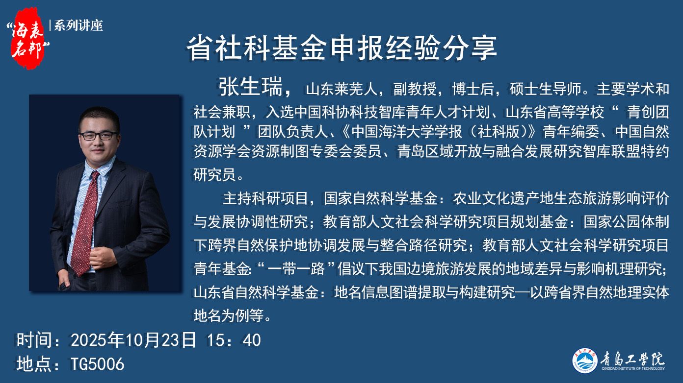 “海表名邦”系列讲座:张生瑞《省社科基金申报经验分享》