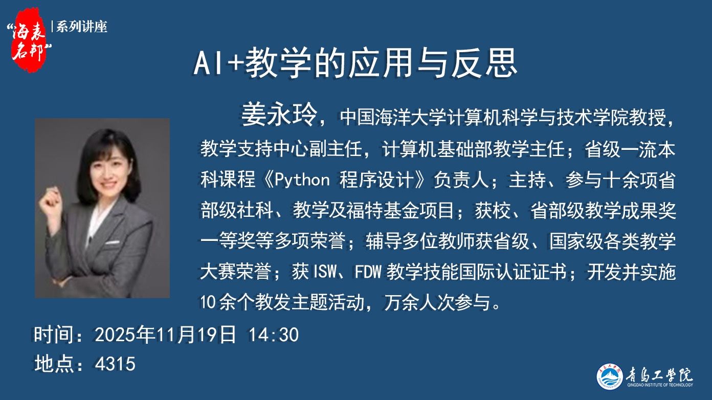 “海表名邦”系列讲座:姜永玲《AI+教学的应用与反思》