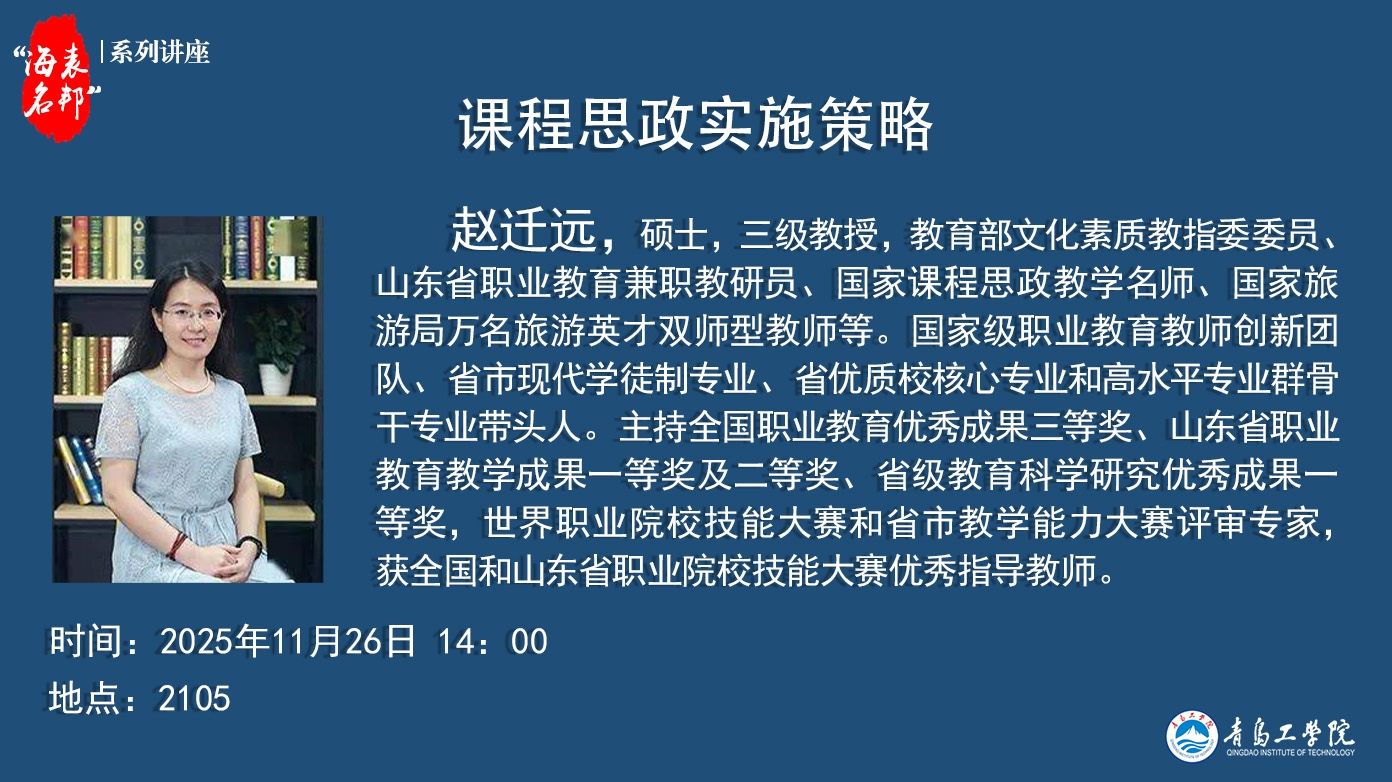 “海表名邦”系列讲座:赵迁远《课程思政实施策略》