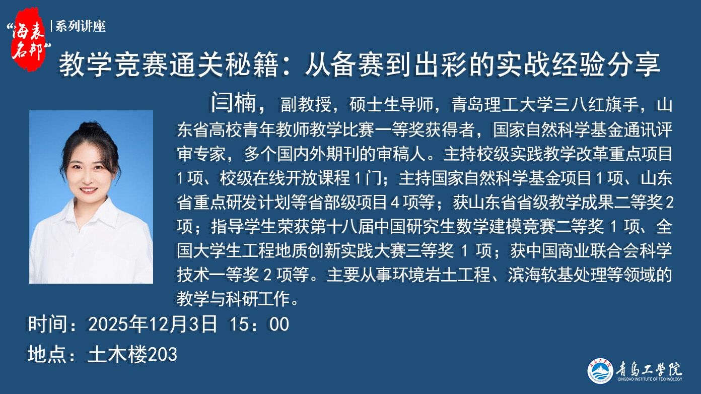 “海表名邦”系列讲座:闫楠《教学竞赛通关秘籍:从备赛到...