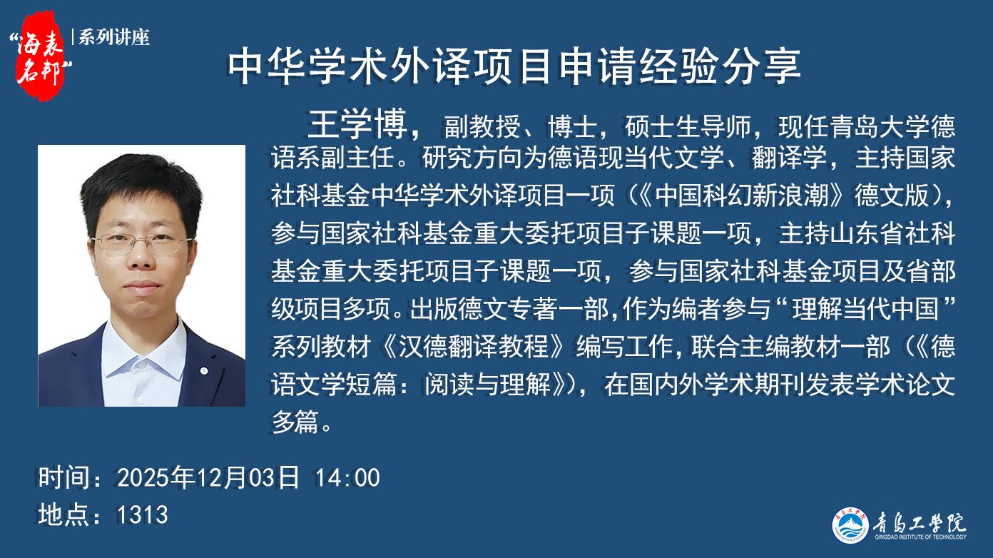 “海表名邦”系列讲座:王学博《中华学术外译项目申请经...