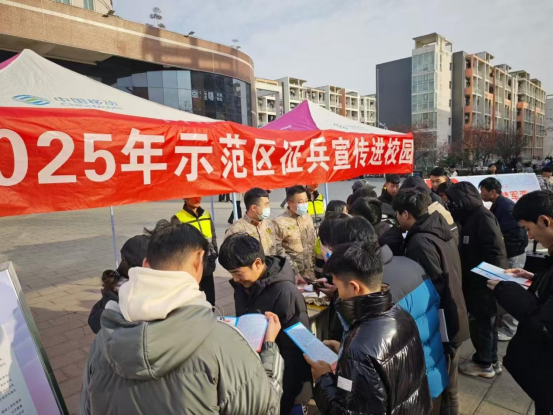 12月27日上午,示范区武装办在我校一餐厅前广场举行了2025年度征兵工作宣传。此次活动旨在向广大学生普及参军入伍的相关政策,激发他们的爱国情怀和报国热情,进一步推动征兵工作的顺利开展。