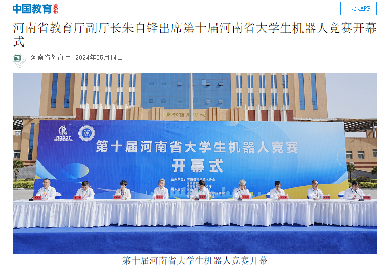 《河南省教育厅2024-5-14》报道我院举办第十届河南省大学生机器人竞赛
