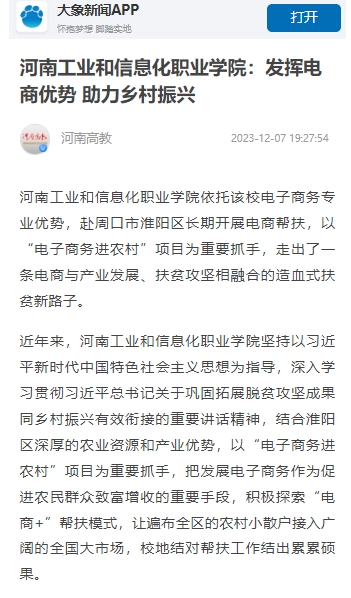 《大象新闻2023-12-7》报道我校校地结对帮扶工作情况