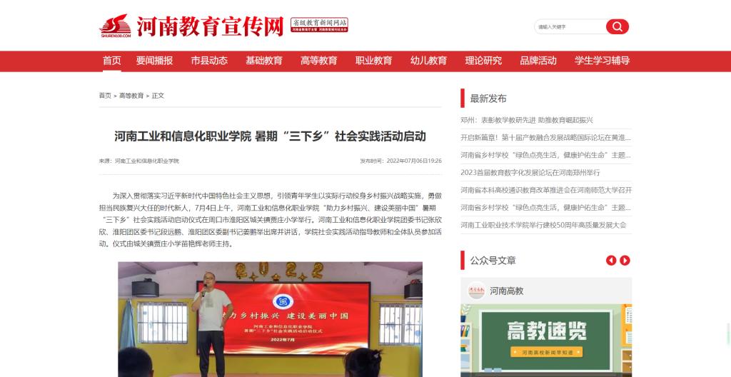 《河南教育宣传网2022-7-06》报道我校暑期“三下乡”社会实践活动启动