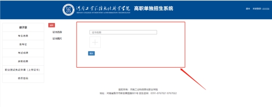 我校2023年单独考试招生职业适应性测试(职业技能测试)申请免试上传证书功能即将开通,请符合条件的考生在规定时间登录我校单招系统(网址:http://ddzs.hciit.edu.cn/)提出申请并上传证书。