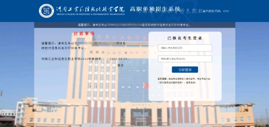 二、我校单招系统遇到访问高峰可能会导致系统短暂无法登陆,遇此情况建议考生错峰登录、下载、打印。