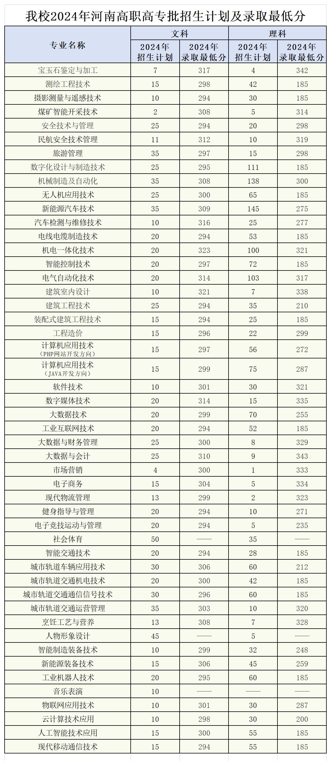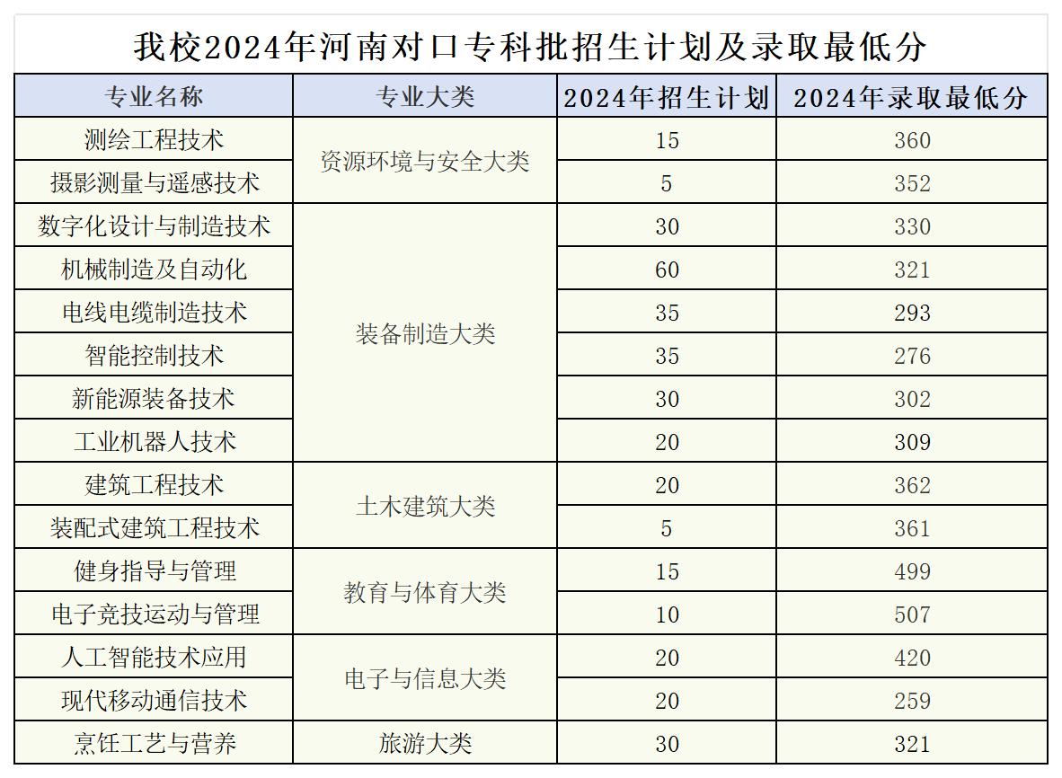 2024年河南工业和信息化职业学院各批次各专业招生计划及录取分数线查询