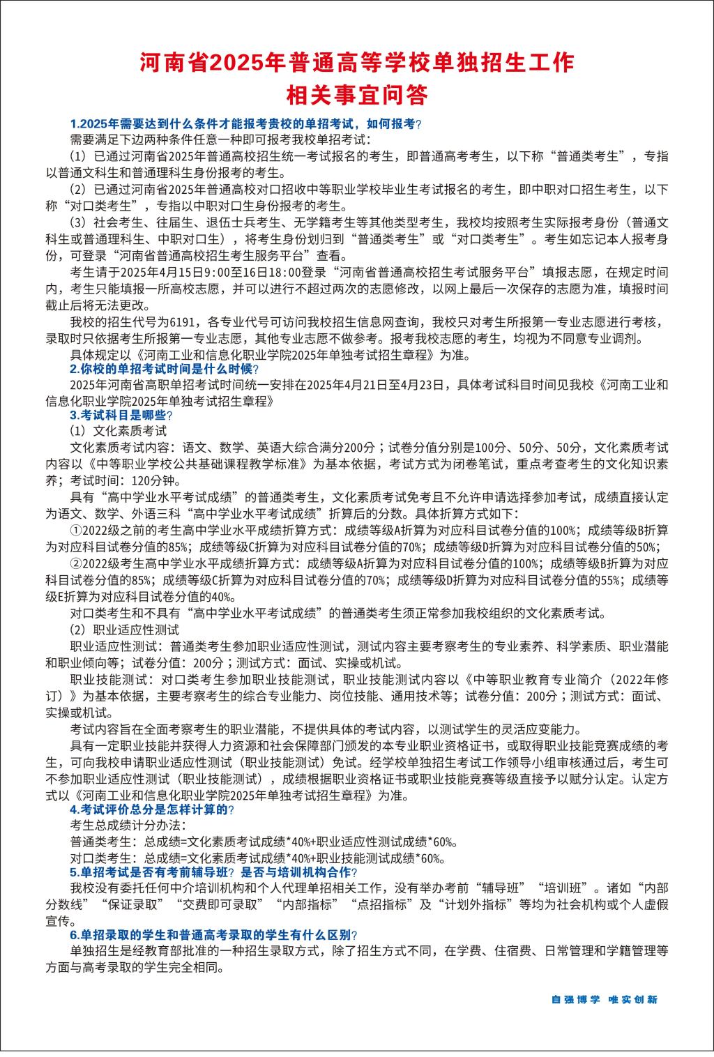 河南工业和信息化职业学院2025年单招招生简章(画册版)